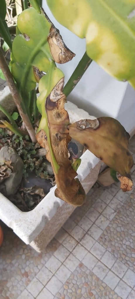 My Queen of the Night is ancient. A 10-year-old may be more. The problem started as yellow marks on the leaves with some brown marks, so I asked a FB Succulent Group. I was assured there was nothing to worry about and it was just cold. I disagreed, argued we’ve had far colder nighttime temperatures, and it has never complained. They ganged up and doubled down on their prognosis, and this is the result.