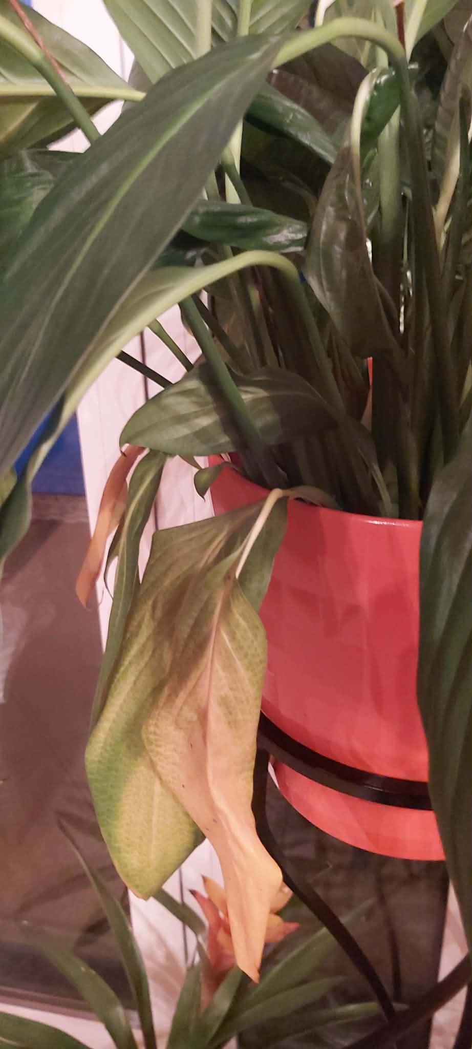 Because of my rotor cuff I am doing very little gardening at the moment (just beginning to fill my studio with new baby plants again!) but, to the best of my knowledge, overwatering leads to soft branching and lower yellow leaves, as in your peace lily – dryness in a pot is more shown by the edges of the leaves being ‘patchy’ yellow and brittle to touch. I am very used to saying ‘hello’ to each plant every morning and hoping the 2-minute touch-and-greet ‘talks’ to me :) ! Your huge dracaena would love a somewhat bigger pot methinks and looks dry :) ?