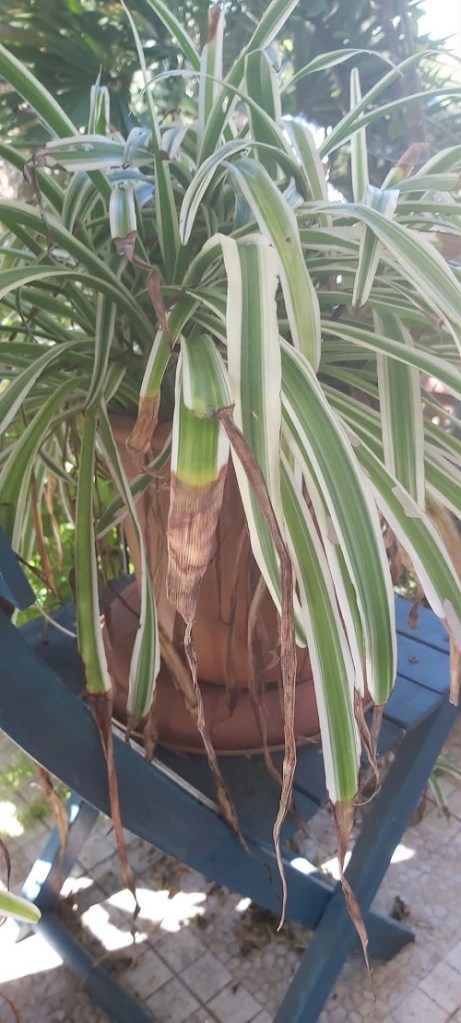 Using a pair of scissors, I removed all the unsightly brown leaf tips on this spider plant.