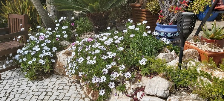 The Osteospurmum and pink succulent flowers (whose name escapes me) have really brought this area to life!
