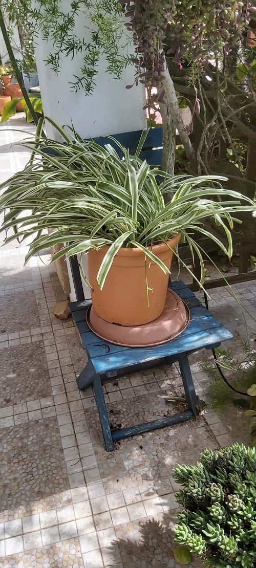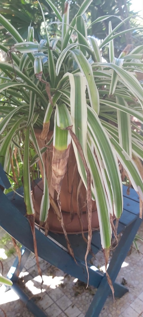 Using a pair of scissors, I removed all the unsightly brown leaf tips on this spider plant.
