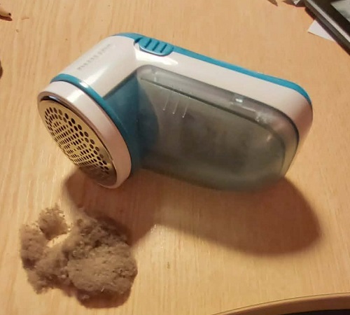 DEBBOBLER – What a BRILLIANT invention! Let me introduce you to the battery-operated jumper debobbler gizmo I’ve just ordered. The new winter jumpers I bought back in December had gone all bobbly and made the jumpers look old and tired before their time. You know what I mean? So many thanks to our daughter for introducing me to this