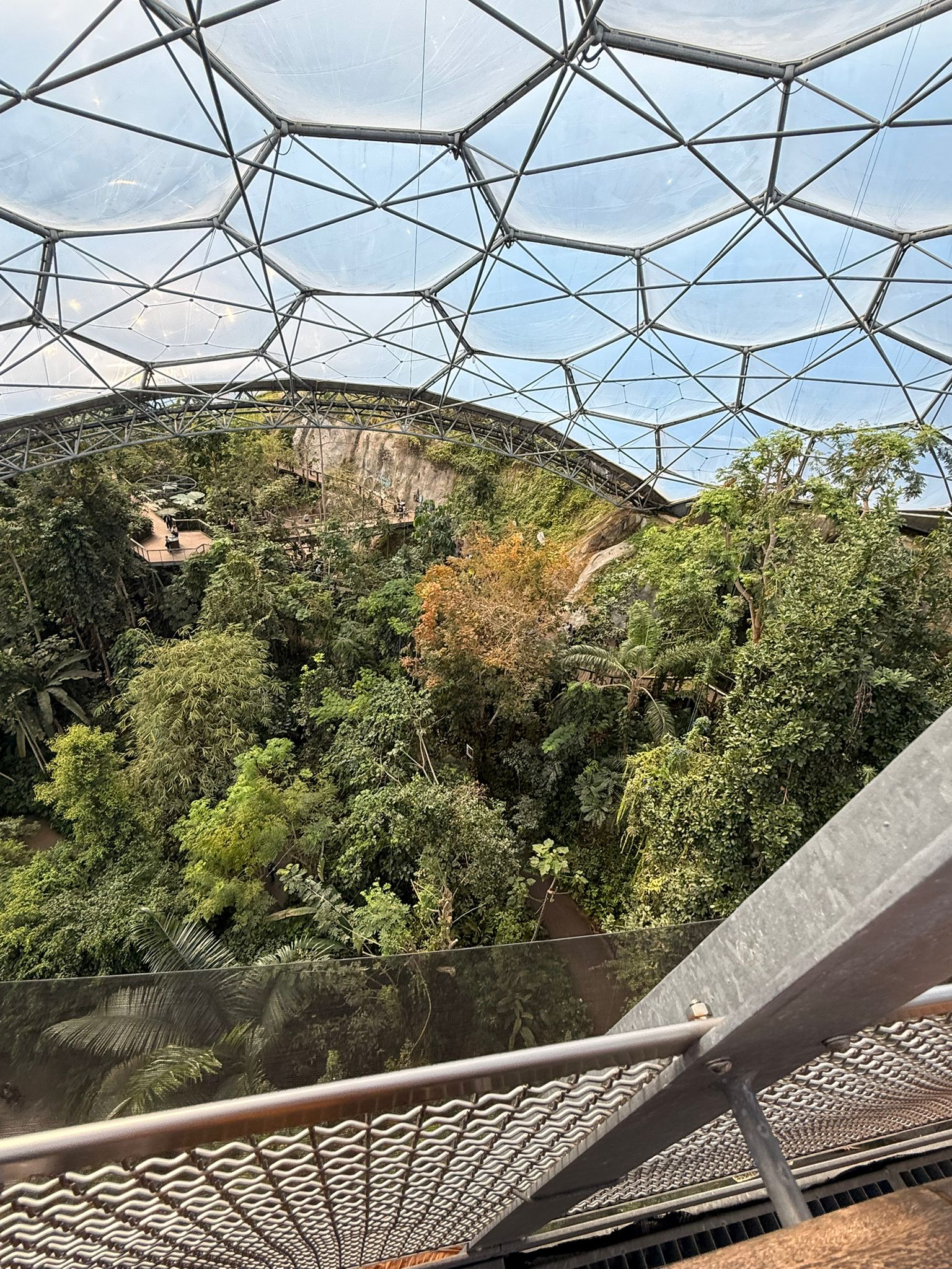 It has been on my bucket list since it opened in 2001, and what a day out. I had no idea it was so huge or built in an exhausted clay pit. The moment we came through the entrance and out onto the balcony and looked down over the various biomes, my heart sank. There was no way, even if I managed to walk down the winding, steep paths to the bottom, I would ever make it back up. No one told us there was a lift, Doh! Anyways, Mr Piglet to the rescue insisted we hire me an electric buggy. A lifesaver!