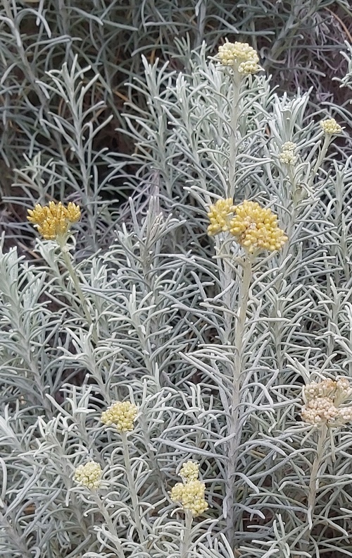 I love the Helichrysum Italicum, or as I sometimes refer to it, the 'curry plant', because of its curry-scented leaves. According to Wikipedia, other common names include Italian strawflower and immortelle. It grows on rocky or sandy ground and can reach up to 60cm high. After picking, the yellow flowers retain their colour and can... Continue Reading →